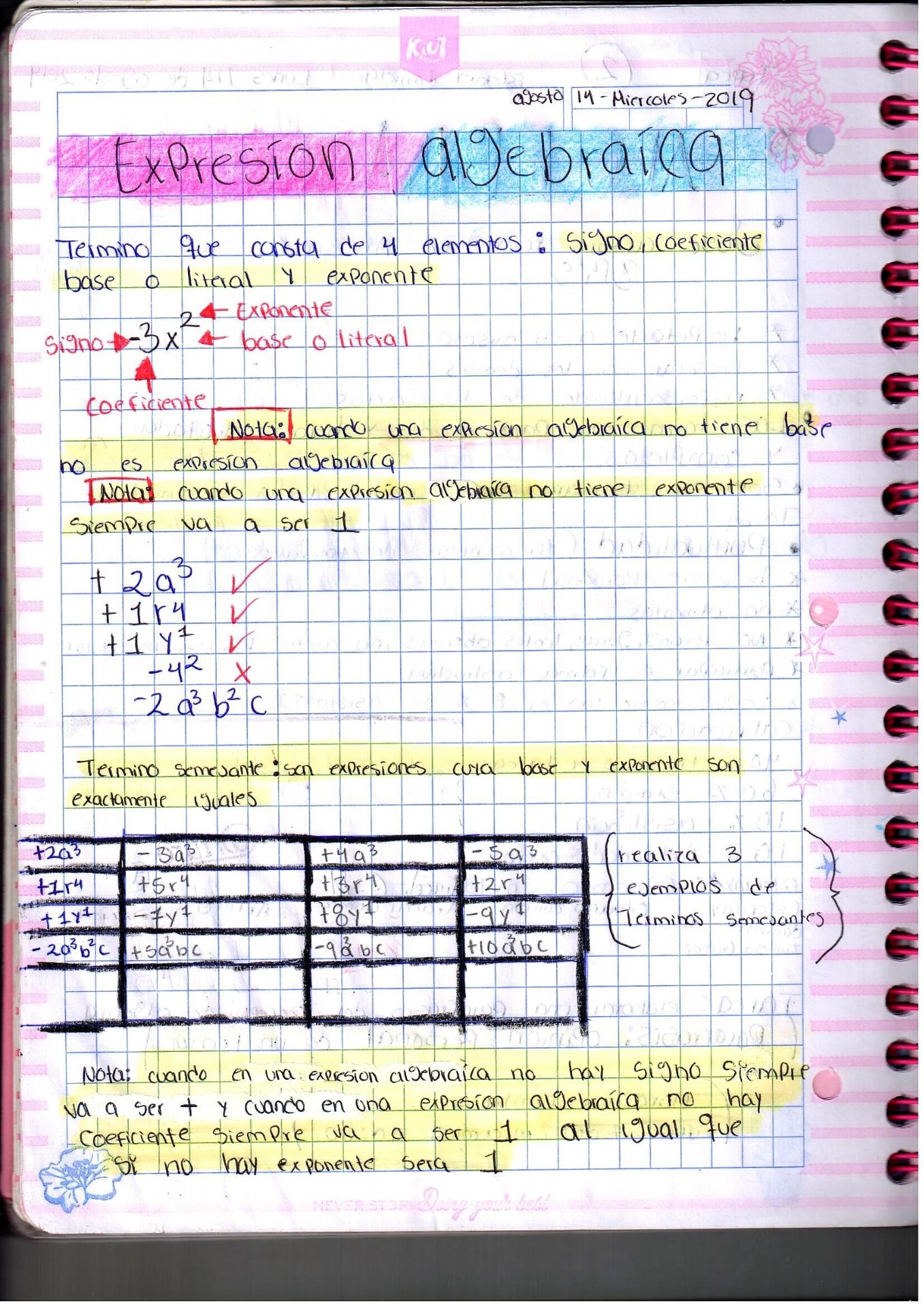 - cuando una expresión algebraica no tiene base { letra } no es expresión algebraica