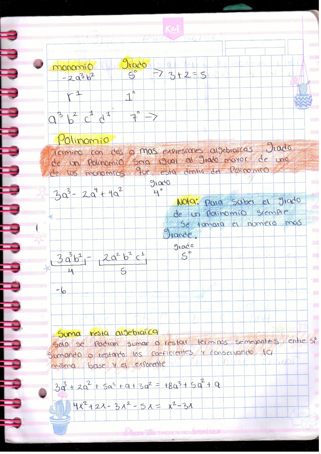 - termino con dos o mas expresiones algebraicas , el grado de un polinomio será igual al grado mayor de uno de los monomios que esta dentro del polinomio
